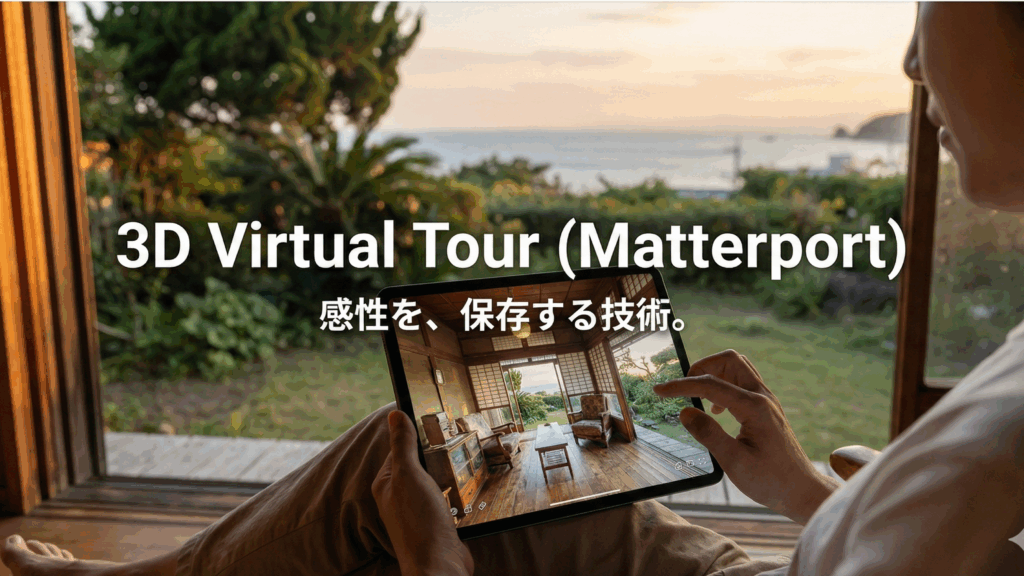 私たちが導入している「Matterport(マターポート)」は、空間を3Dスキャンし、Web上にリアルな「デジタルツイン(双子)」を生成する技術です。 まるで現地にいるかのように自由に歩き回り、上下左右あらゆる角度から物件を確認できます。